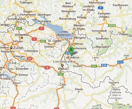 Beschreibung für die Region Rheintalautobahn A14 - Ausfahrt Rankweil - Richtung Laterns - Abzweigung nach Übersaxen Bei der Kirche in Übersaxen links abbiegen - zweite Abzweigung links (Latusstraße) - bis auf der rechten Seite großer Bauernhof (Fritsch) kommt - Achtung: Direkt nach dem großen Stallgebäude rechts in die kleine Privatstraße abbiegen. Orientieren Sie sich auf den nachfolgenden Übersichtskarten. ![]() ![]() ![]() |